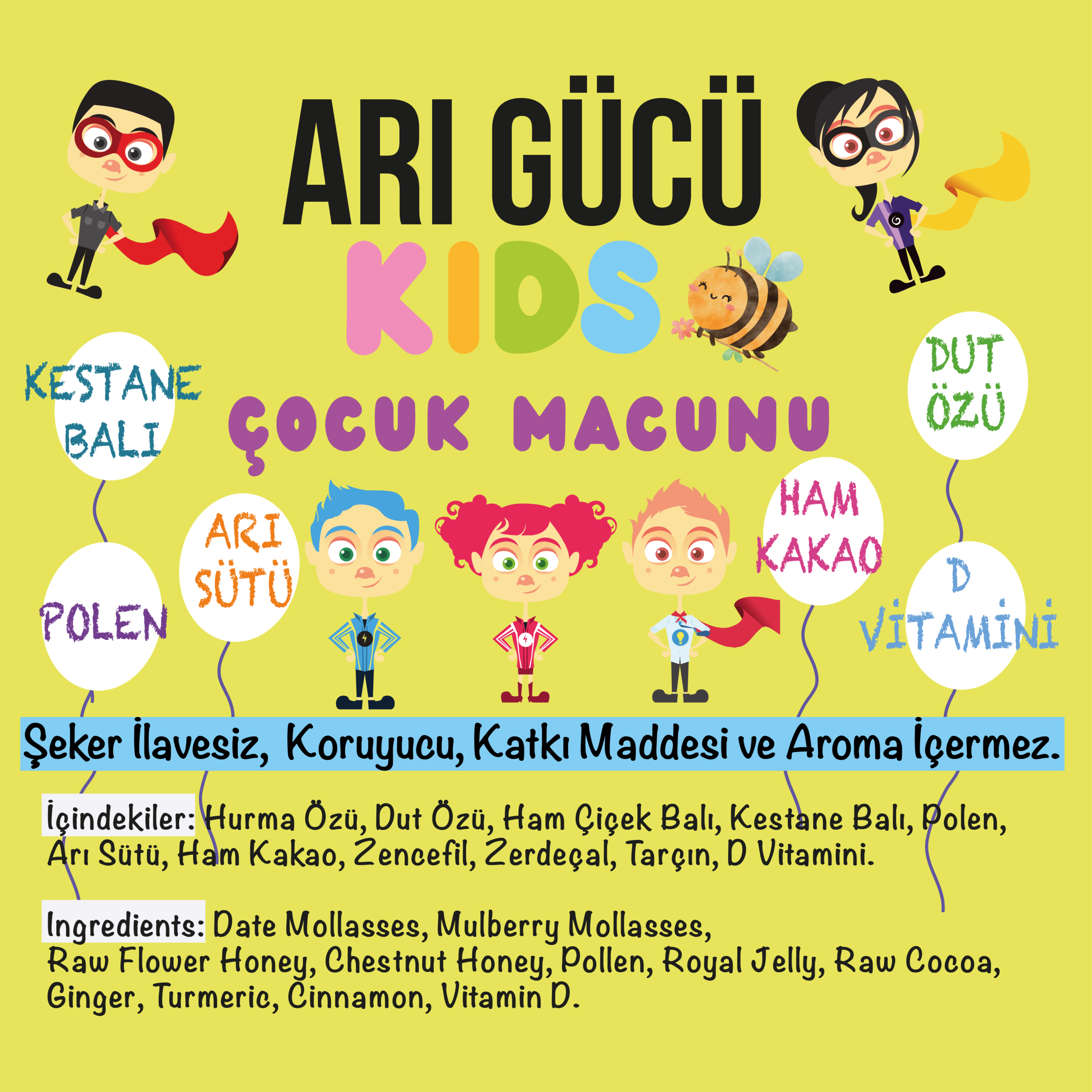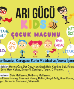 Arı gücü çocuk macunu – Arı sütlü – Kestane ballı – Ham kakaolu – Polen – D vitaminli 1 adet 220 gr