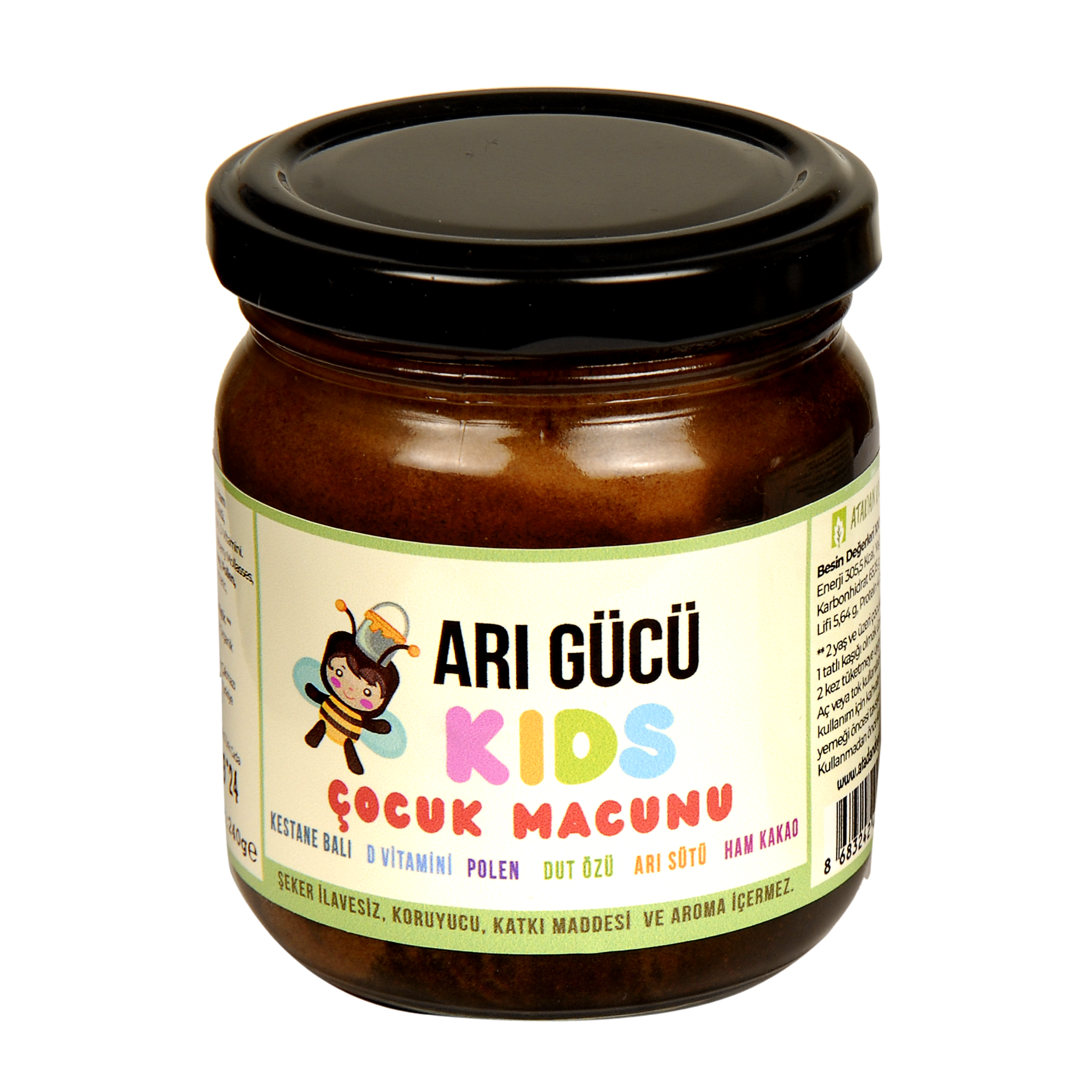 ARI GÜCÜ Çocuk Macunu Arı Sütü Kestane Balı Ham Kakaolu Polen D Vitaminli 1 Adet 220 gr