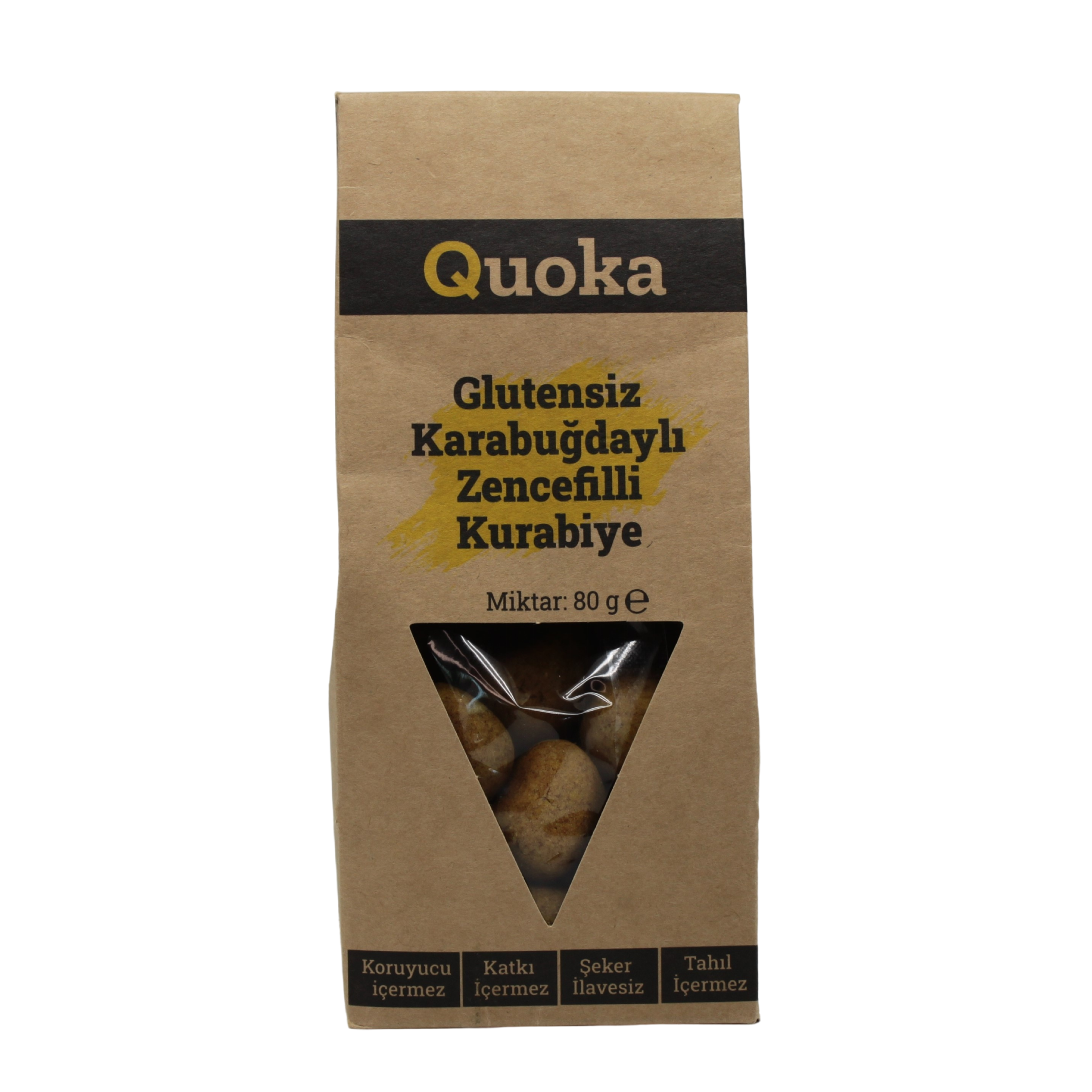 QUOKA Glutensiz, Rafine Şekersiz Zencefil, Tarçın, Zerdeçallı Kurabiye 1 paket x 80gr